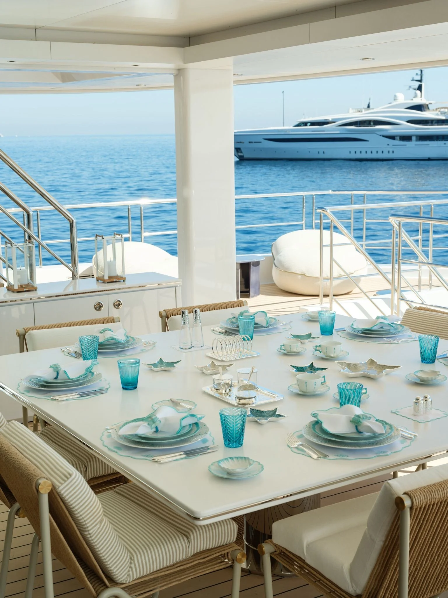 A unique and gorgeous bespoke linen collection for yachts, custom designed in collaboration with the wonderful @sabrinamontecarlo for the Monaco Yacht Show 2025.